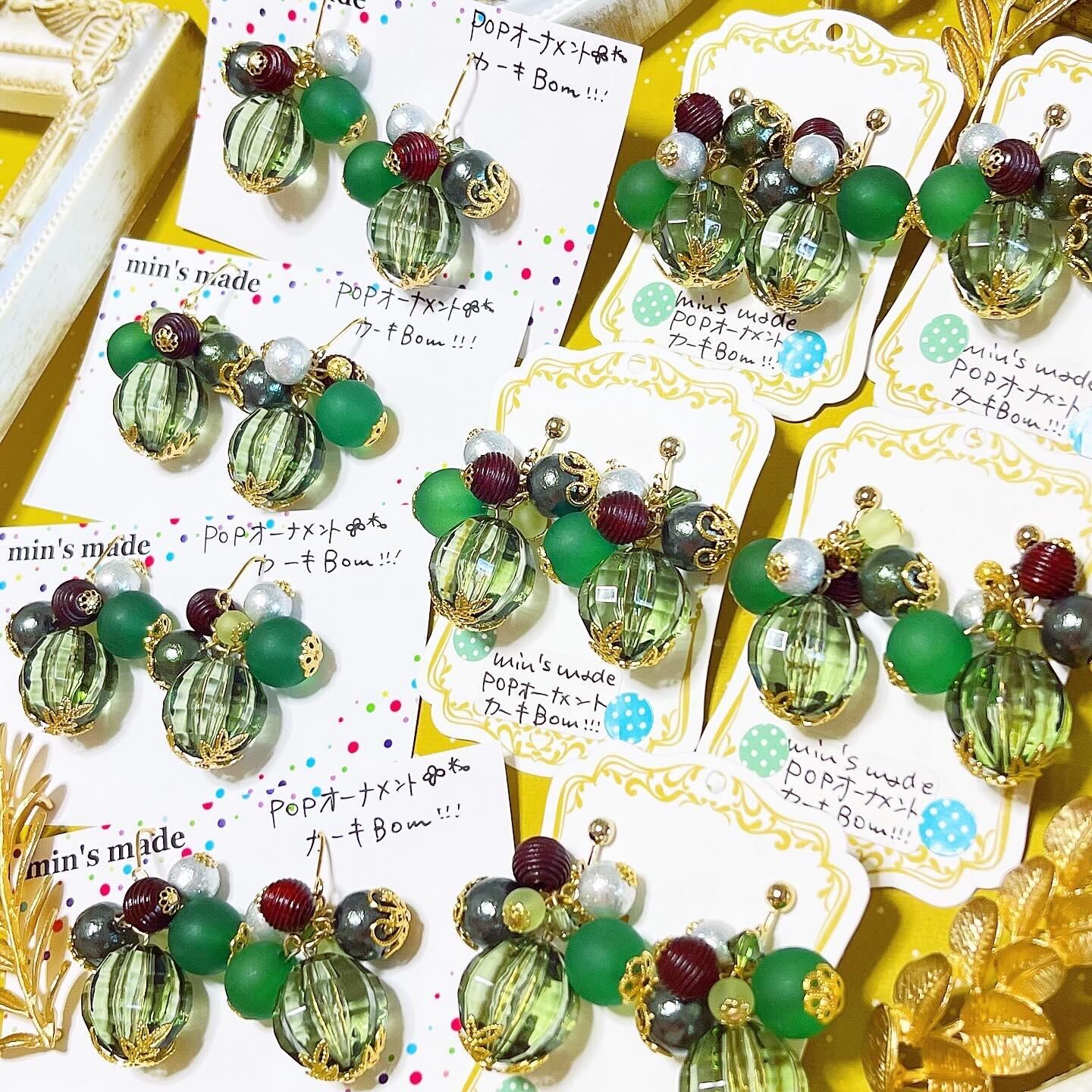 POPオーナメント✴︎カーキBom!!♦︎イヤリングorピアス