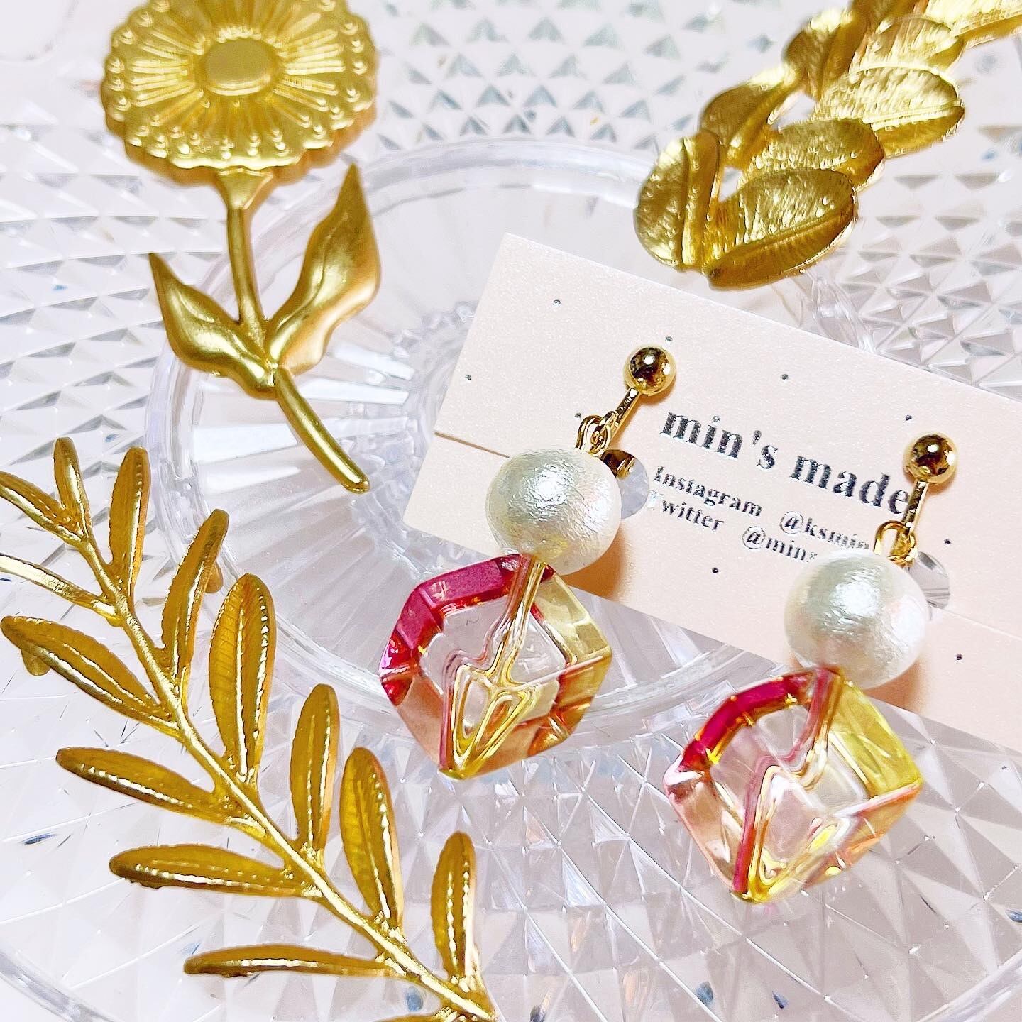 アクリルキューブですがそこまで重みもなく、耳元でうるうる揺れて可愛いです♡