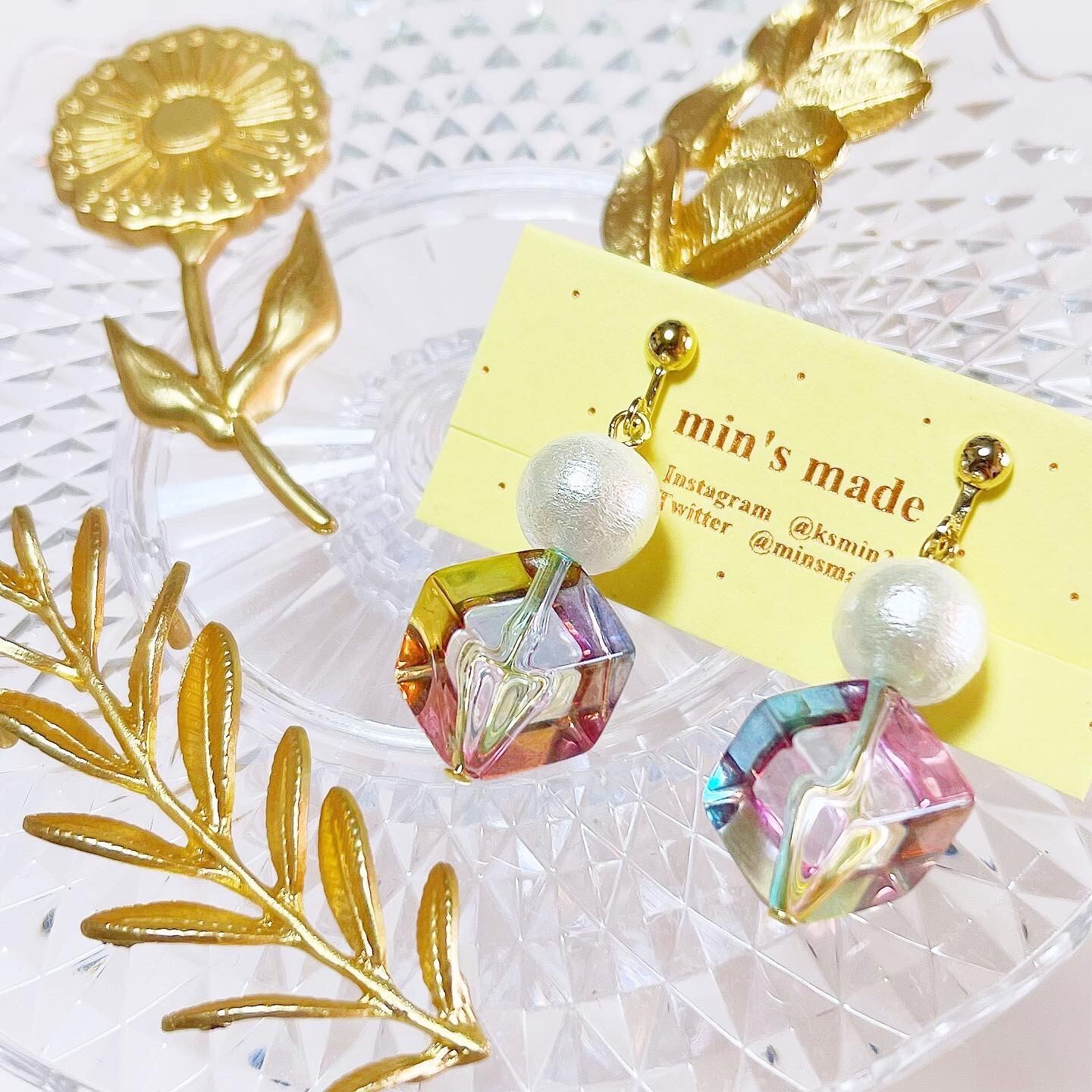 アクリルキューブですがそこまで重みもなく、耳元でうるうる揺れて可愛いです♡