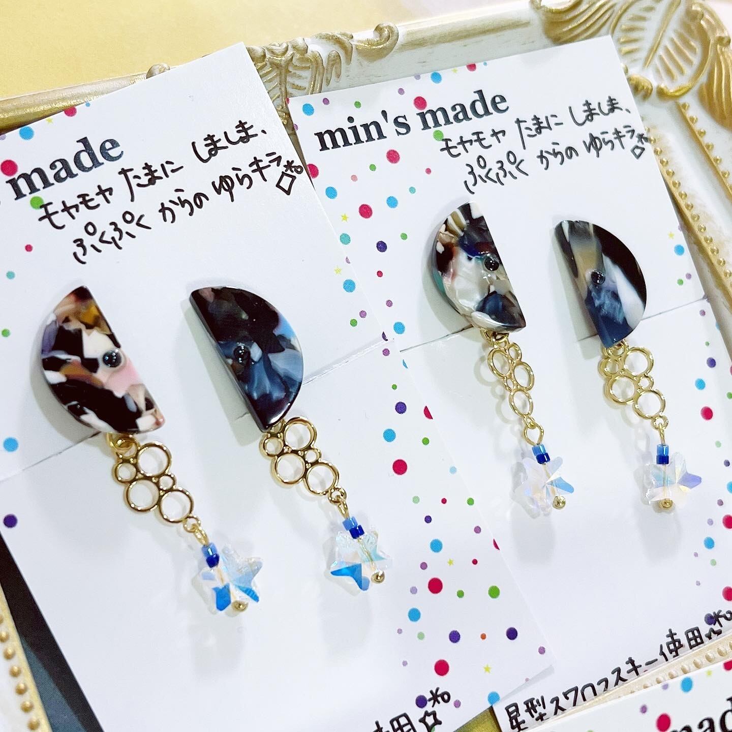 半円の中にはさりげなく1粒、ネイビーのガラスストーンが光っています✴︎